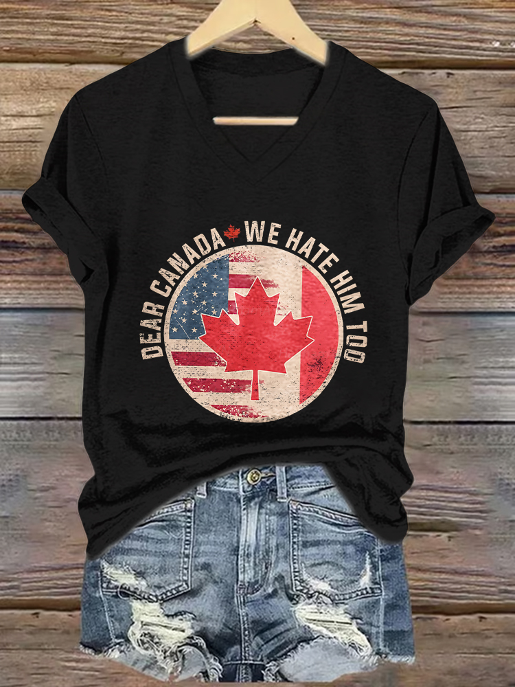 Women's Dear Canada We Hate Him Too Short Sleeves V-Neck Pure Cotton T-Shirt