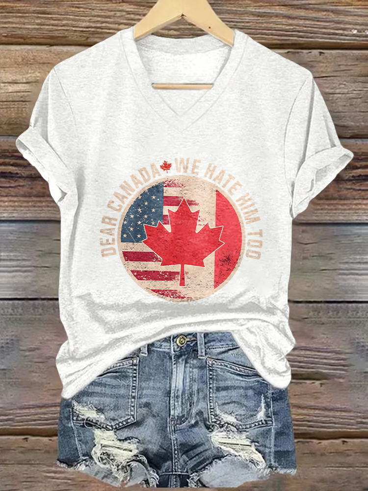 Women's Dear Canada We Hate Him Too Short Sleeves V-Neck Pure Cotton T-Shirt 9542510