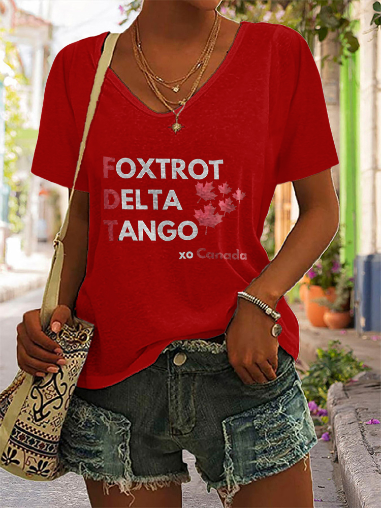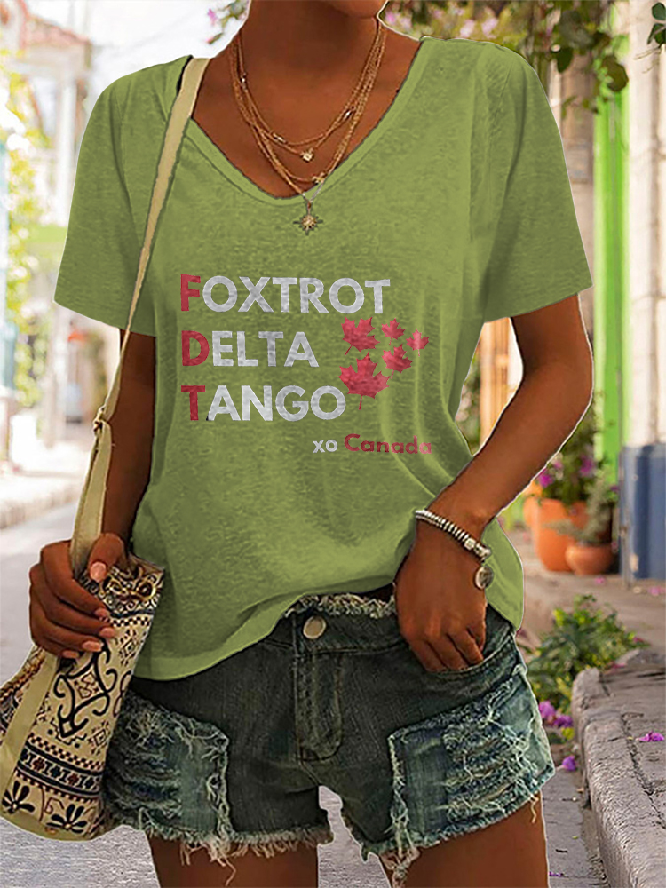 Women's Foxtrot Delta Tango Short Sleeves V-Neck Pure Cotton T-Shirt