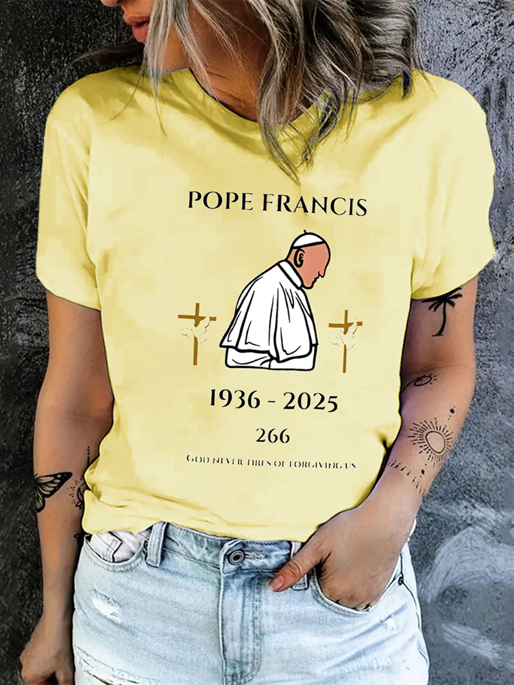 Women's God Never Tires Of Forgiving Us Print Short Sleeve Round Neck Cotton T-Shirt 9534233