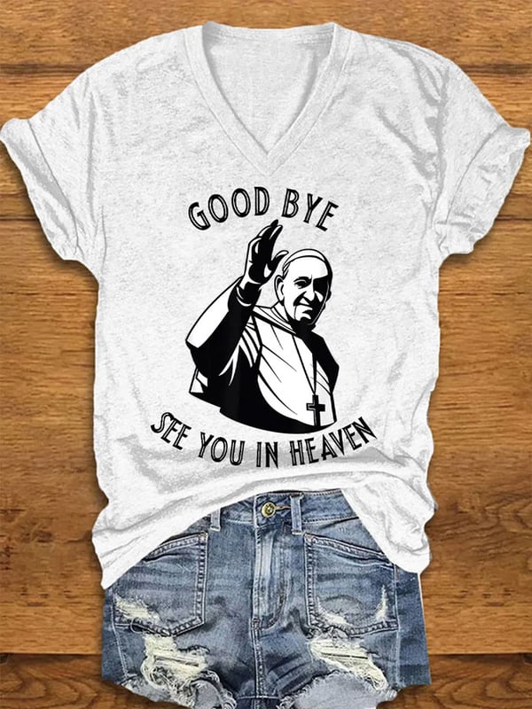 Women's Good Bye See You In Heaven Print Short Sleeve V-Neck Cotton T-Shirt 9534485