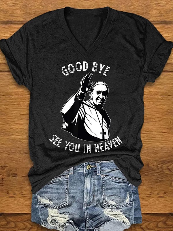 Women's Good Bye See You In Heaven Print Short Sleeve V-Neck Cotton T-Shirt
