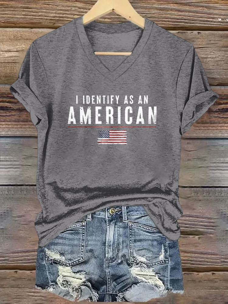 Women's I Dentify As An America Print Short Sleeve Round Neck Cotton T-Shirt