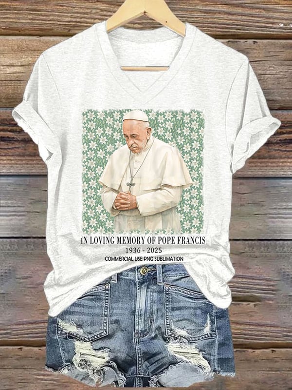 Women's In Loving Memory Of Pf 1936-2025 Print Short Sleeve V-Neck Cotton T-Shirt 9534541
