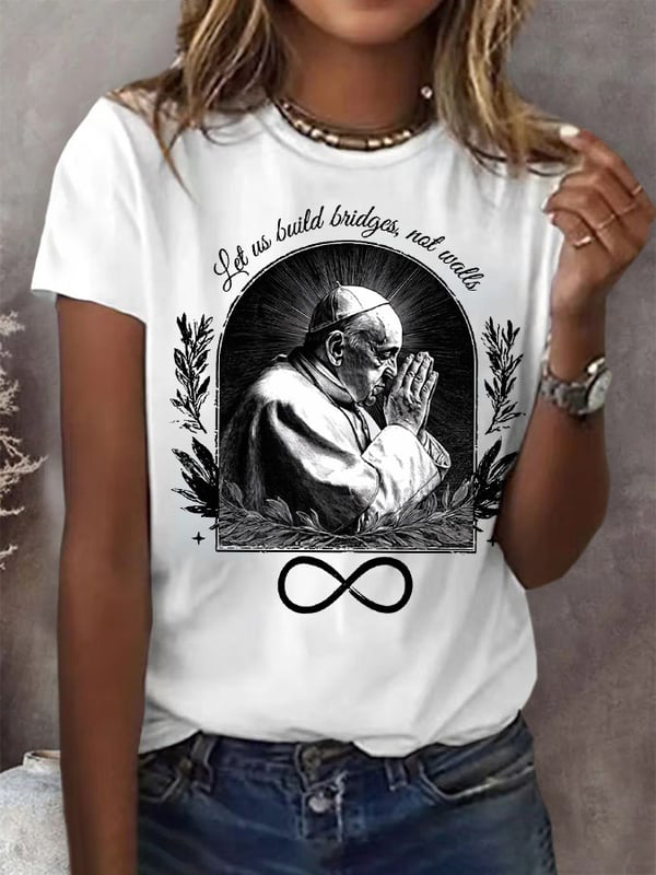 Women's Let Us Build Bridges Not Walls Print Short Sleeve Round Neck Cotton T-Shirt