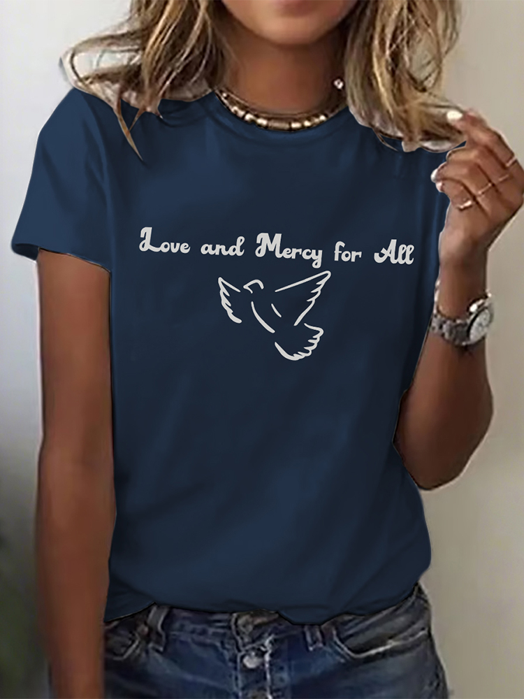 Women's Love And Mercy For All Print Short Sleeve Round Neck Cotton T-Shirt