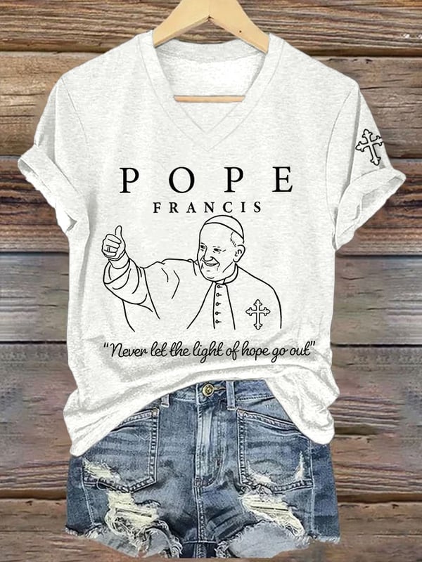 Women's Never Let The Light Of Hope Go Out 1936-2025 Print Short Sleeve V-Neck Cotton T-Shirt