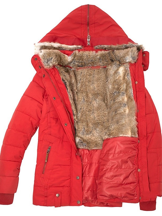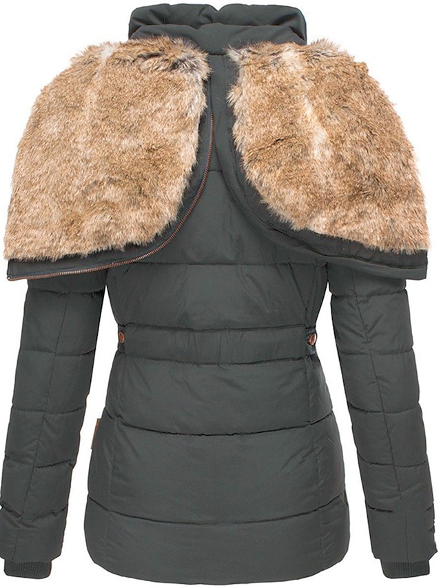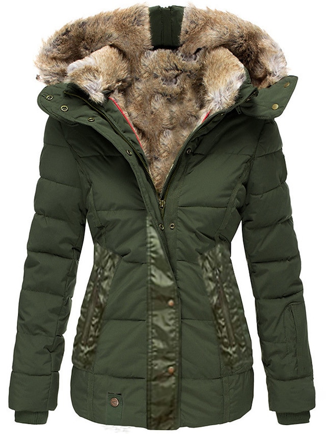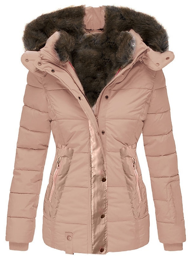 Gender: Women's, Outerwear Type: Parka, Occasion: Going out, Street, Vacation, Daily Wear, Season: Winter, Fall, Function: Breathable, Warm, Fabric: Polyester, Fleece, Placket: Single Breasted, Zipper, Style: Street Style, Casual, Stylish, Outerwear Length: Regular, Pattern: Plain, Design: Fur Collar, with Pockets, Neckline: Hoodie, Sleeve Length: Long Sleeve, Fit Type: Regular Fit, Elasticity: Micro-elastic, Look After Me: Machine wash,