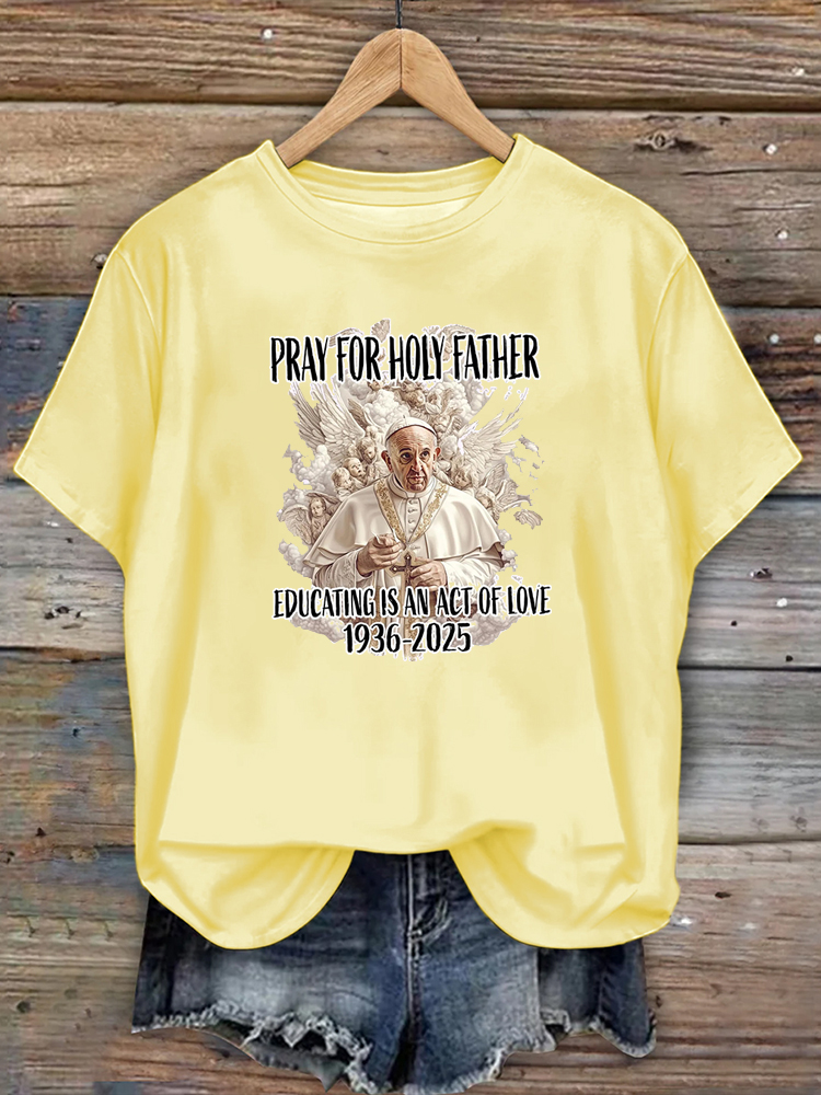 Women's Pray For Holy Father Educating Is An Act Of Loving 1936-2025 Print Short Sleeve Round Neck Cotton T-Shirt 9532460