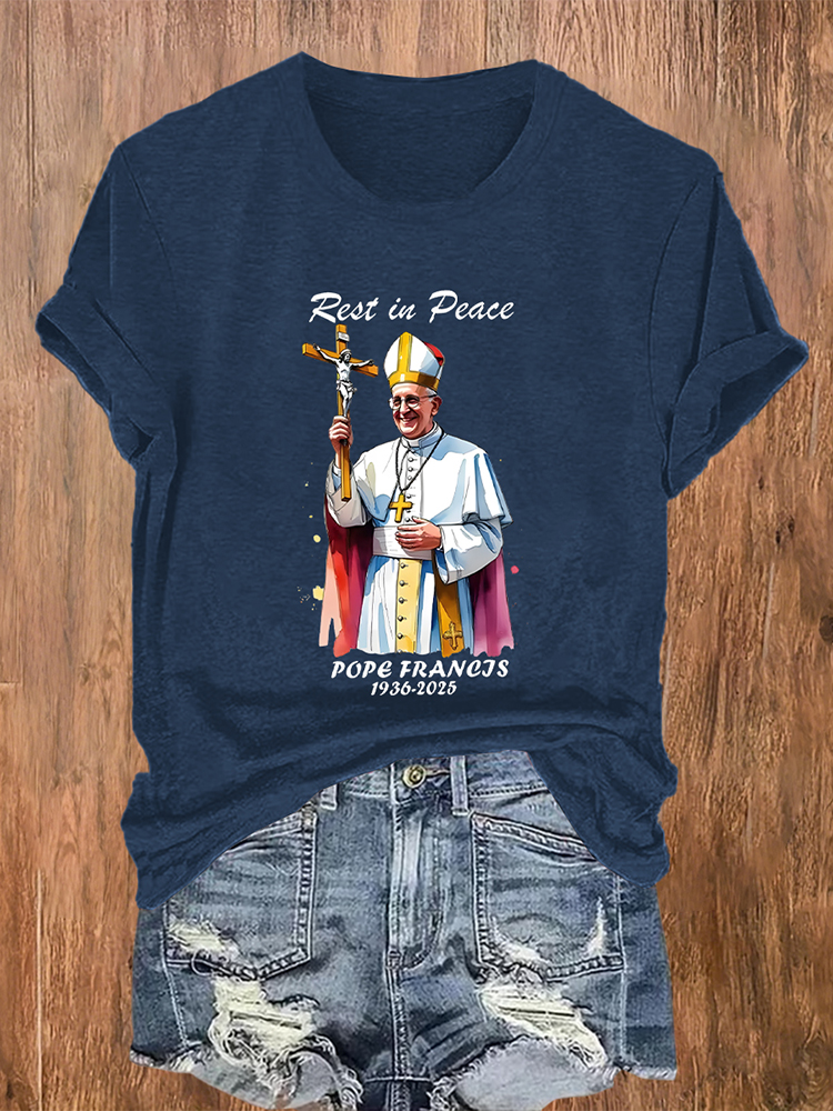 Women's Rest In Peace 1936-2025 Print Short Sleeve Round Neck Cotton T-Shirt 9533140