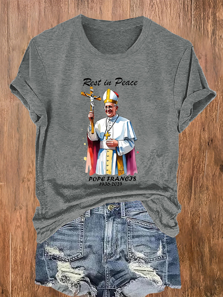Women's Rest In Peace 1936-2025 Print Short Sleeve Round Neck Cotton T-Shirt