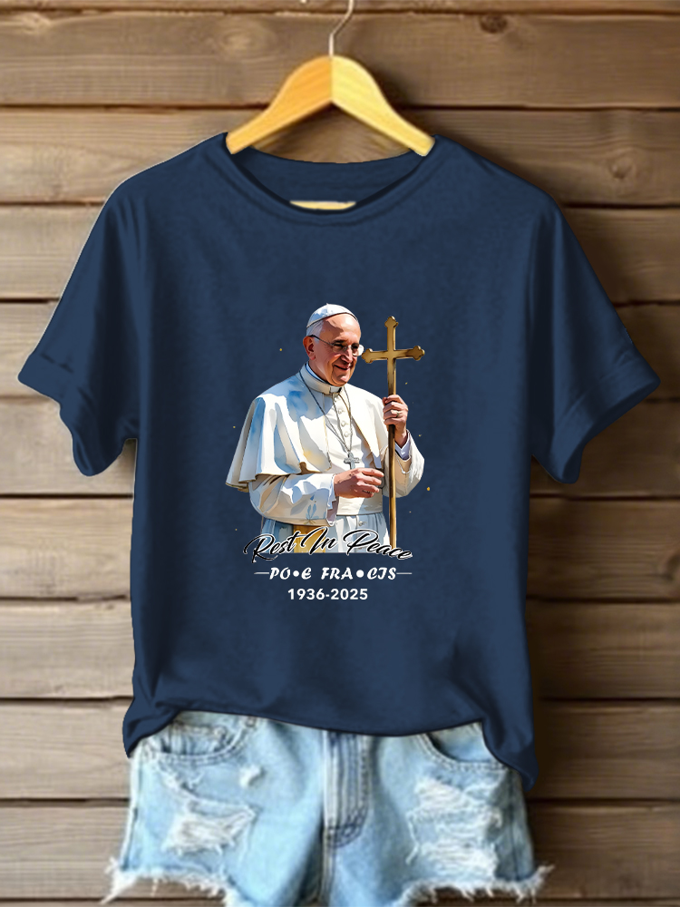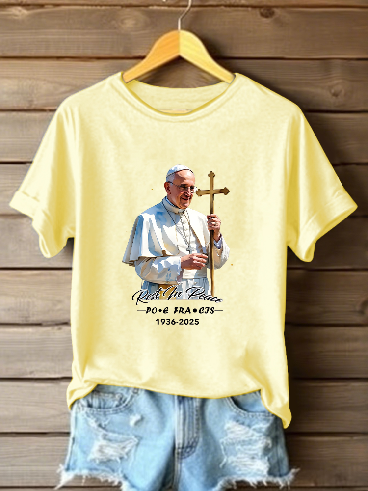 Women's Rest In Peace 1936-2025 Print Short Sleeve Round Neck Cotton T-Shirt 9532834