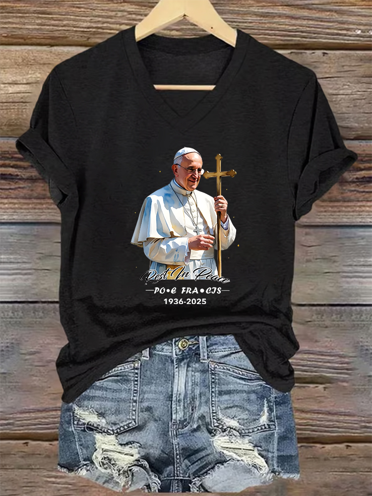 Women's Rest In Peace 1936-2025 Print Short Sleeve V-Neck Cotton T-Shirt