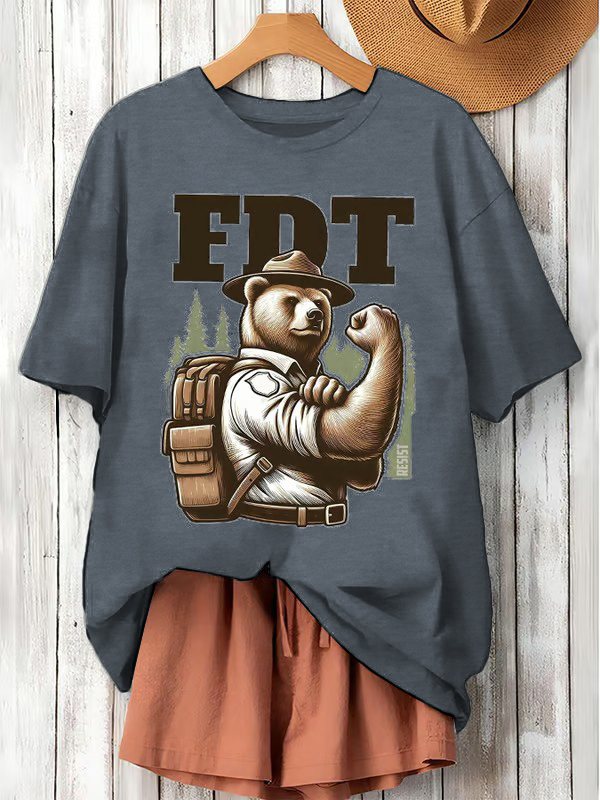 Women'S Retro Support National Parks FDT Resist Bear Print T-Shirt