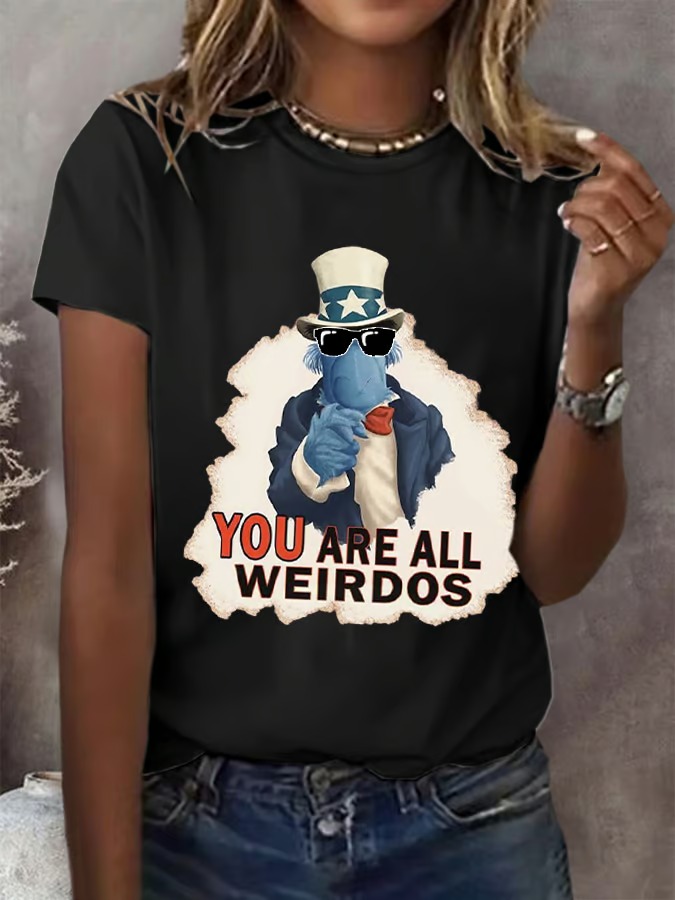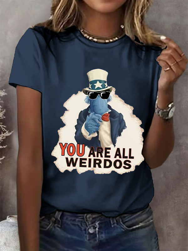 Women'S Retro You Are All Weirdos Printed Short-Sleeved T-Shirt