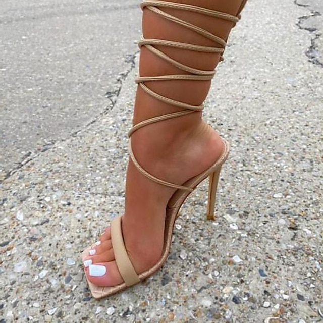-Incorporate the hottest 2023 trends with these lace-up strappy sandals and stilettos. Whether you're looking for a sexy or minimalistic style, these square toe heels have got you covered for any occasion.