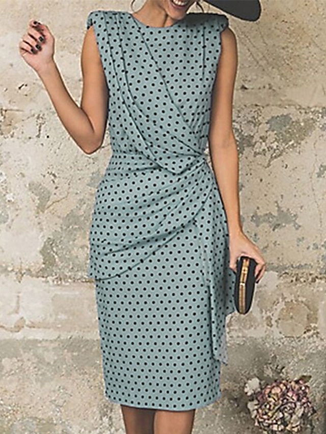 - Retro-style ruched design with sleeveless and knee-length cut in a slim fit.