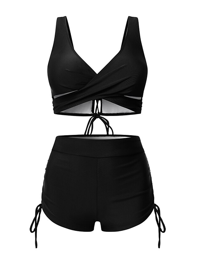 1. Sporty two-piece swimsuit with a pleated open back for a stylish look.