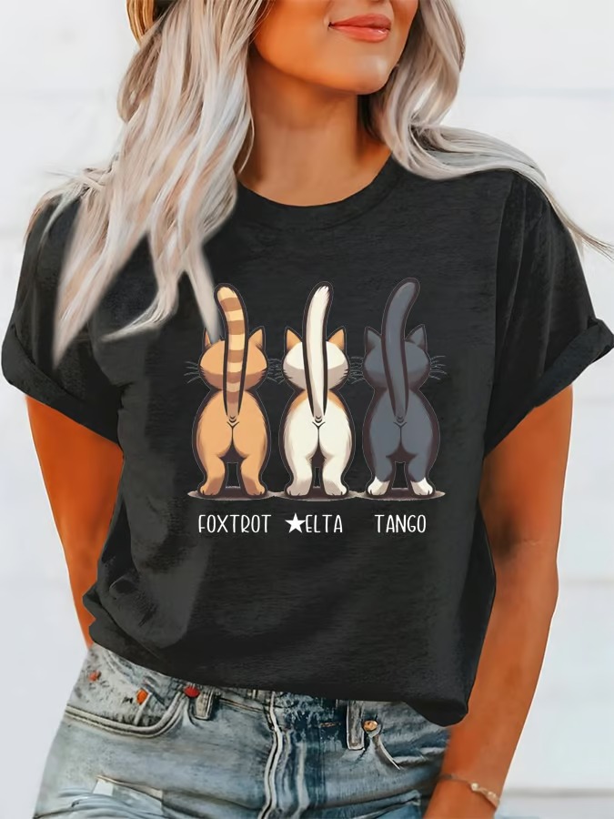 Women'S T-Shirt Female Cat FDT Print Casual T-Shirt Pattern Printed Pure Cotton Round Collar 9525144