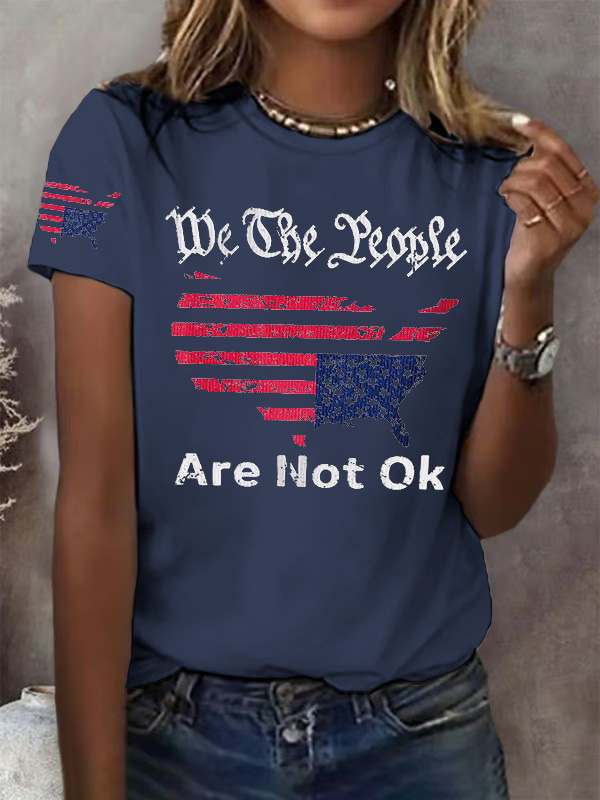 Women'S T-Shirt Retro We The People Are Not Ok Print T-Shirt Round Neck Pure Cotton Short Sleeves