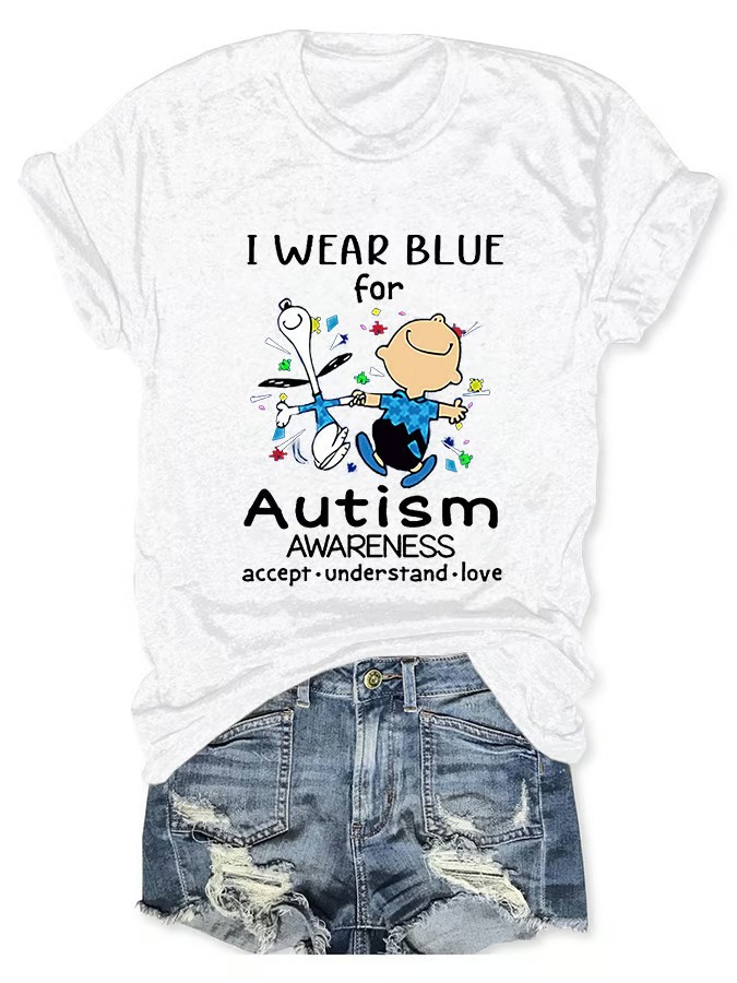Women'S T-Shirt Round Neck Autism Awareness I Wear Autism Printed T-Shirt Pure Cotton Short Sleeves