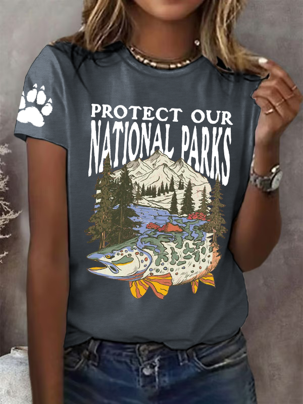 Women'S T-Shirt Women Protect Our National Parks Printed Crewneck T-Shirt Pure Cotton Casual 9523268