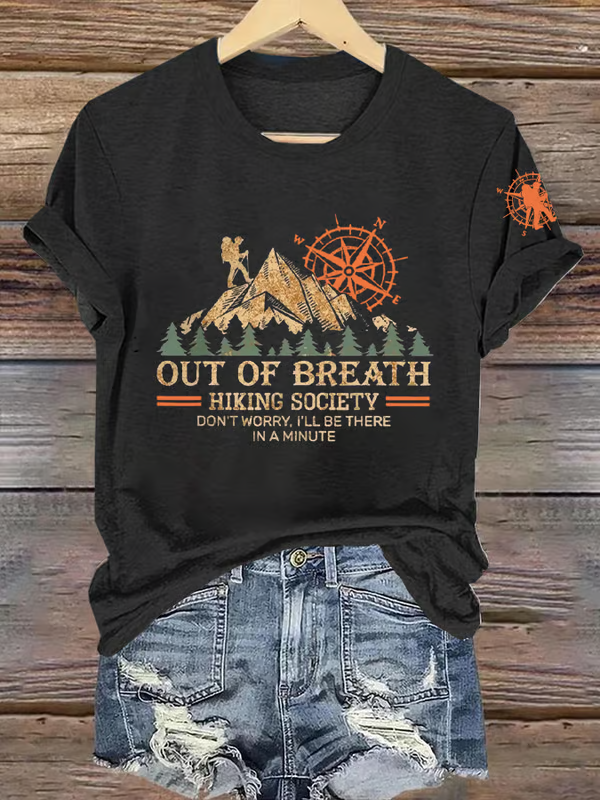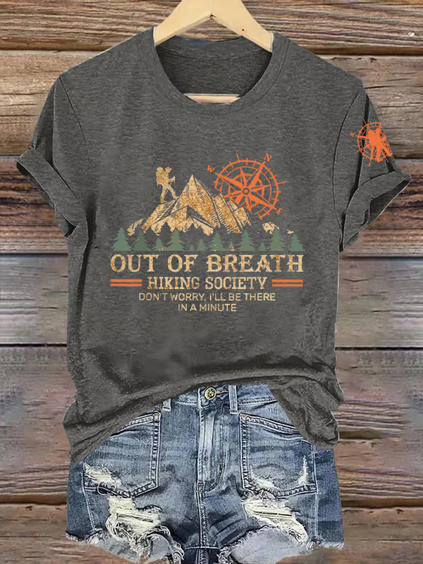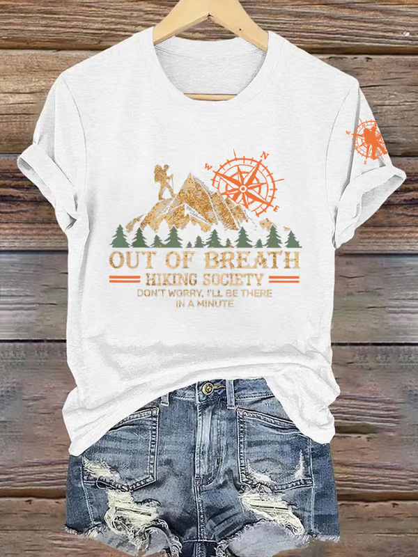 Women'S T-Shirt Women'S Out Of Breath Hiking Society Don'T Worry I'Ll Be There Soon Printed Crew Neck Short Sleeve T-Shirt