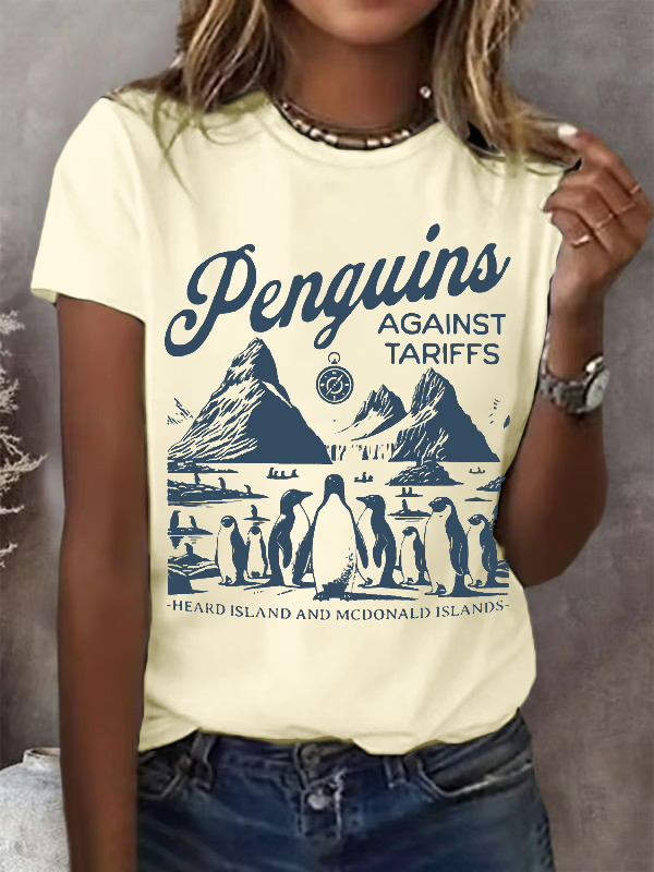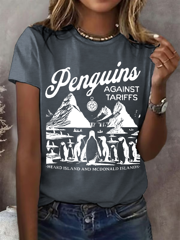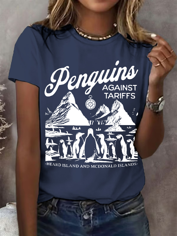 Women'S T-Shirt Women'S Penguin Fin Printed Round Neck T-Shirt Printed Short Sleeve 9524614