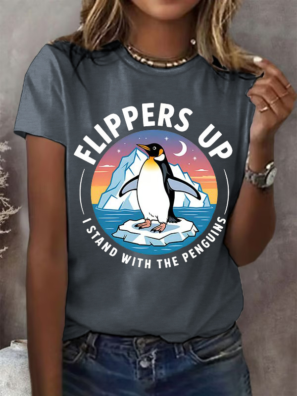 Women'S T-Shirt Women's Penguins Flippers Up Print Round Neck T-Shirt