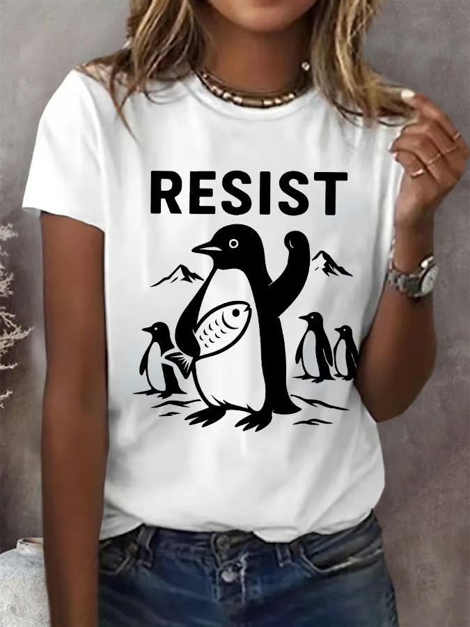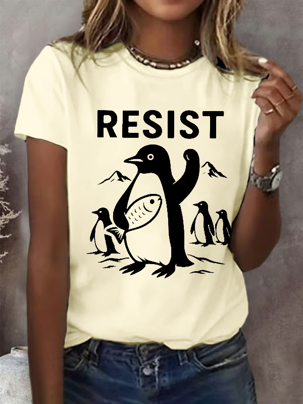 Women'S T-Shirt Women'S Penguins Resist Print Round Neck T-Shirt 9524764