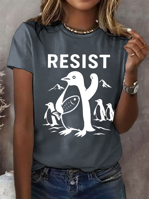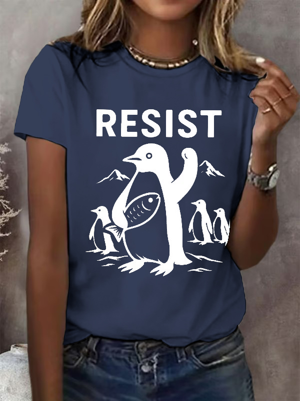 Women'S T-Shirt Women'S Penguins Resist Print Round Neck T-Shirt