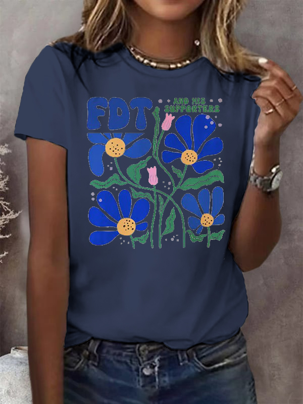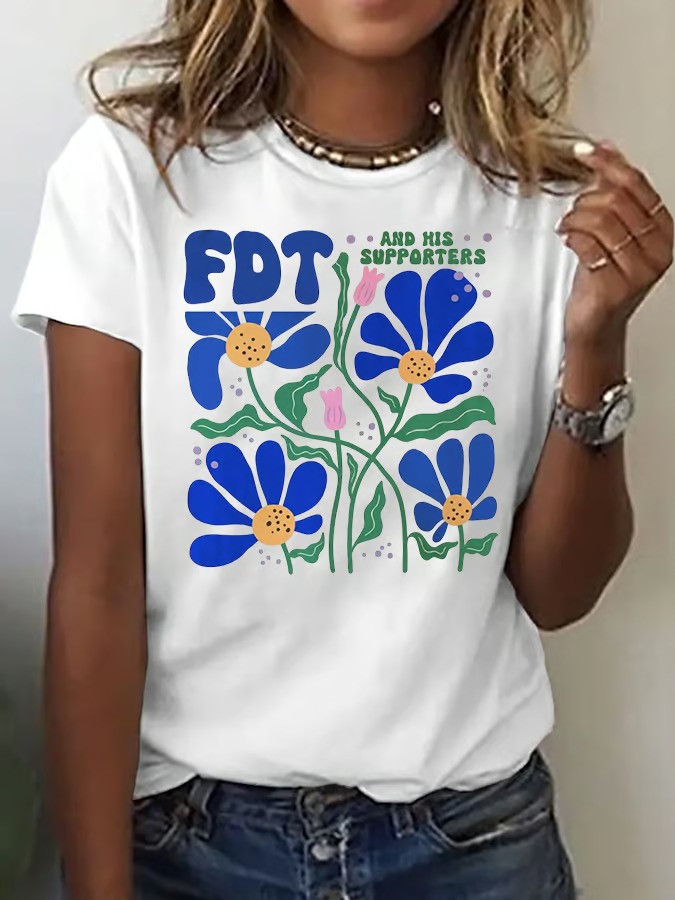 Women'S T-Shirt Women'S Printed T-Shirt Art Print Round Neck Pure Cotton Short Sleeve