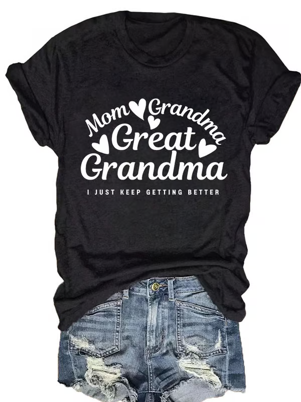 Women'S T-Shirt Women'S Slogans Mom Grandma Grandma I Just Keep Getting Better Printed T-Shirt