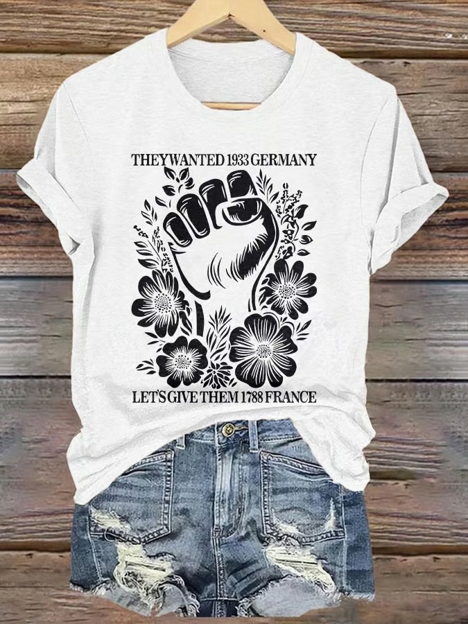 Women'S T-Shirt Women'S They Want 1939 Germany Let'S Give Them 1789 France Printed Round Neck T-Shirt