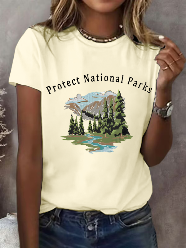 Women'S T-Shirt Women'S Vintage Protect Our National Park Print T-Shirt Theme T-Shirt Crew-Neck 9523352