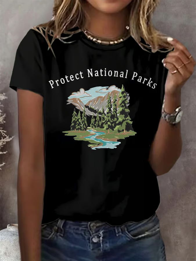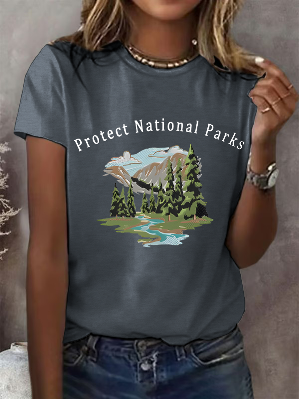Women'S T-Shirt Women'S Vintage Protect Our National Park Print T-Shirt Theme T-Shirt Crew-Neck