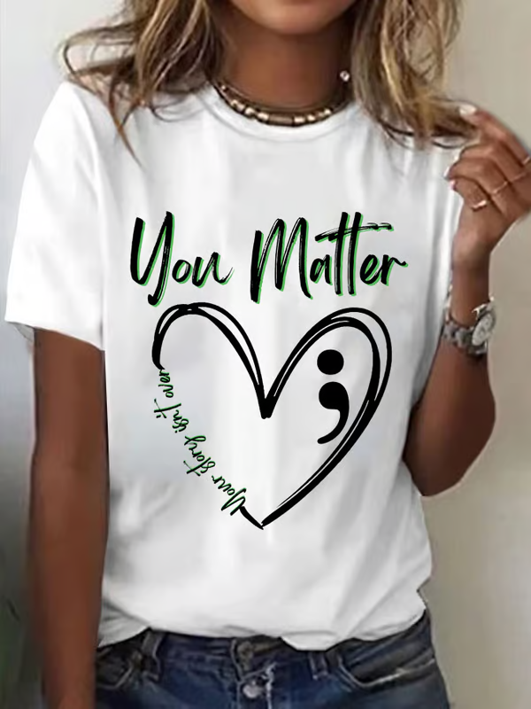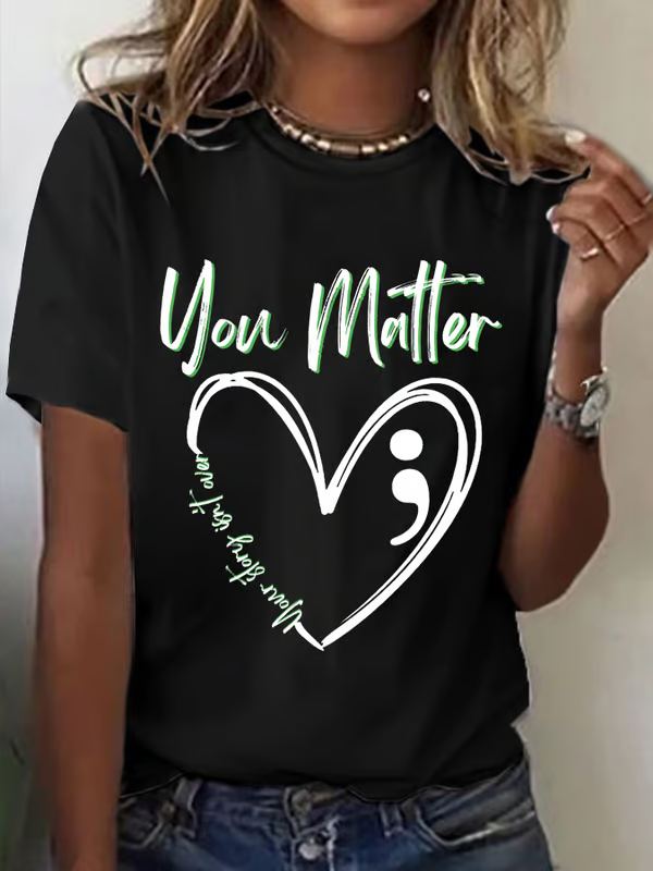 Women'S T-Shirt Women'S You Matter Your Story Isn'T Over Print Round Neck T-Shirt 9512635