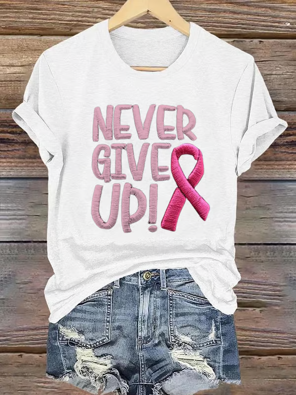 Women'S T-Shirts Women's Never Give Up Pink Ribbon Breast Cancer Awareness Print Shirt 9513271