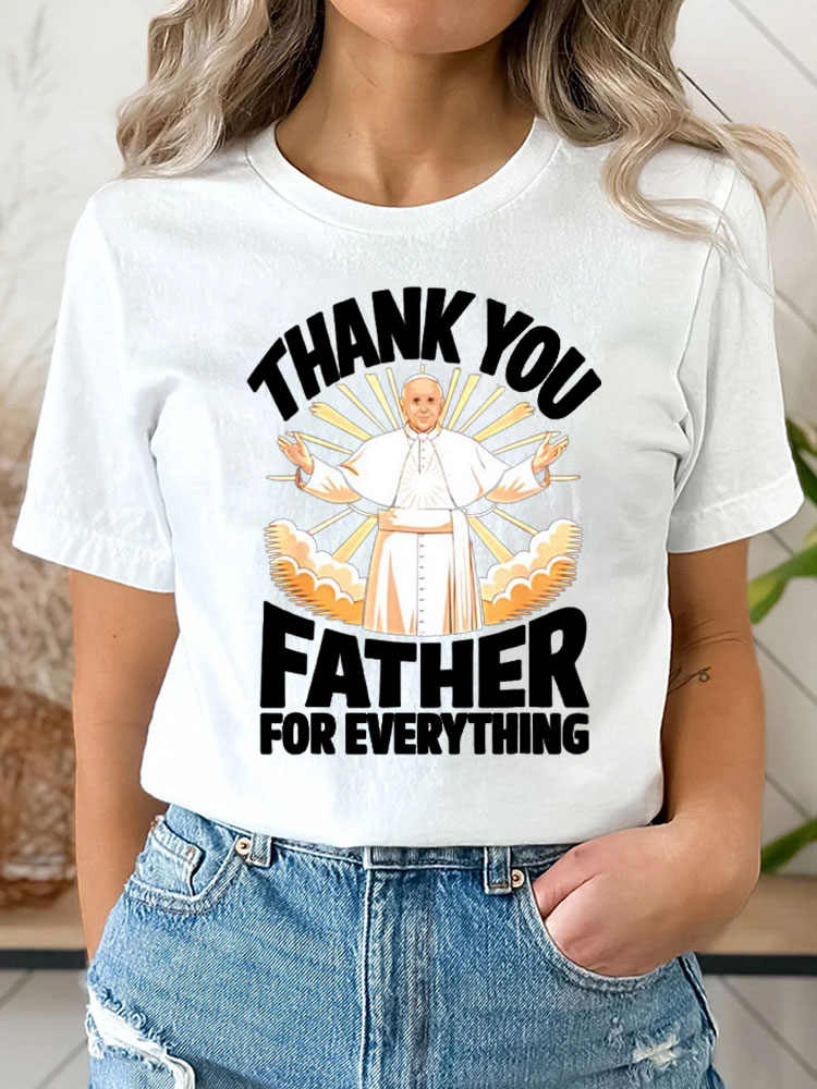 Women's Thank You Father 1936-2025 Print Short Sleeve Round Neck Cotton T-Shirt 9537330