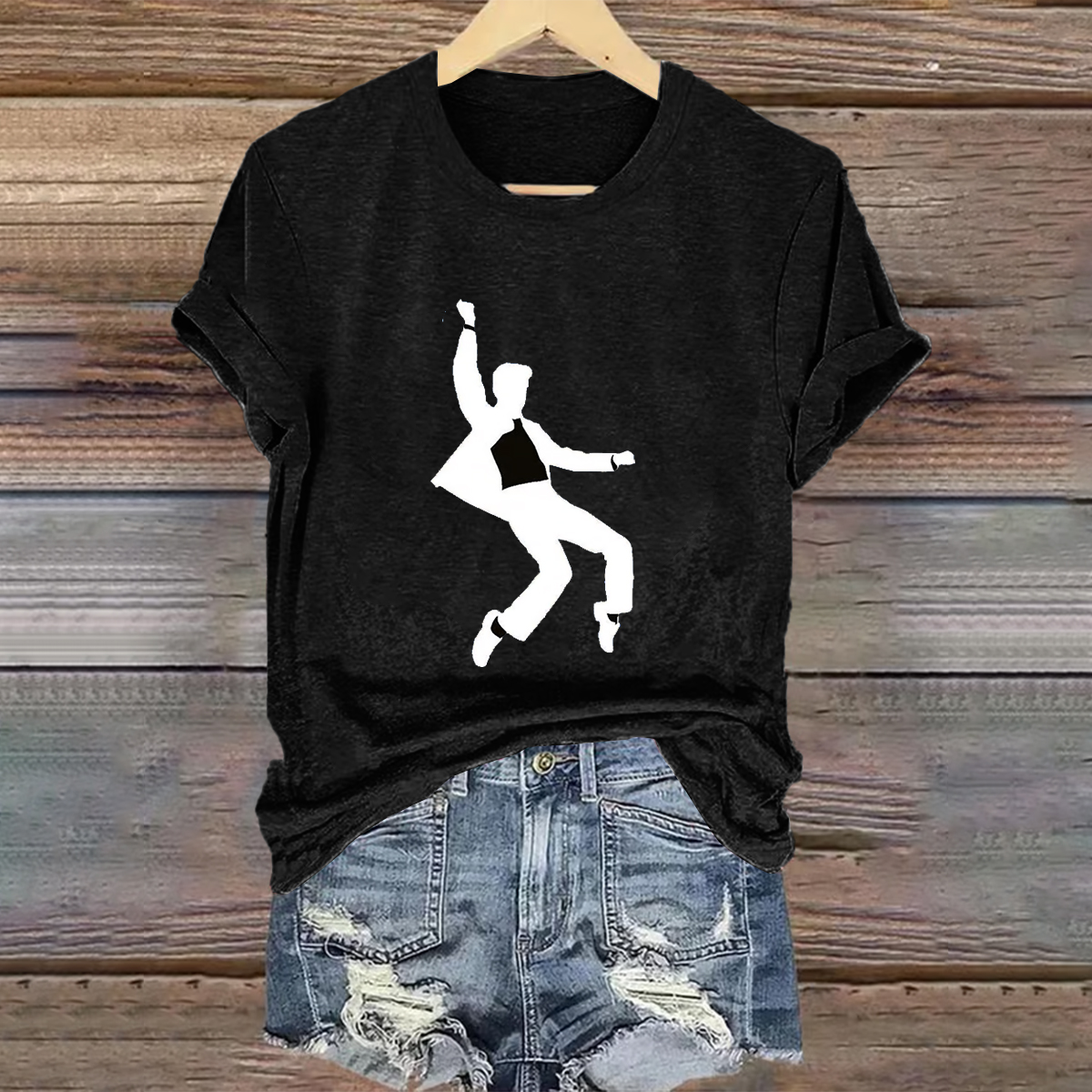 Women's The King People Silhouette Print Short Sleeve Round Neck Cotton T-Shirt