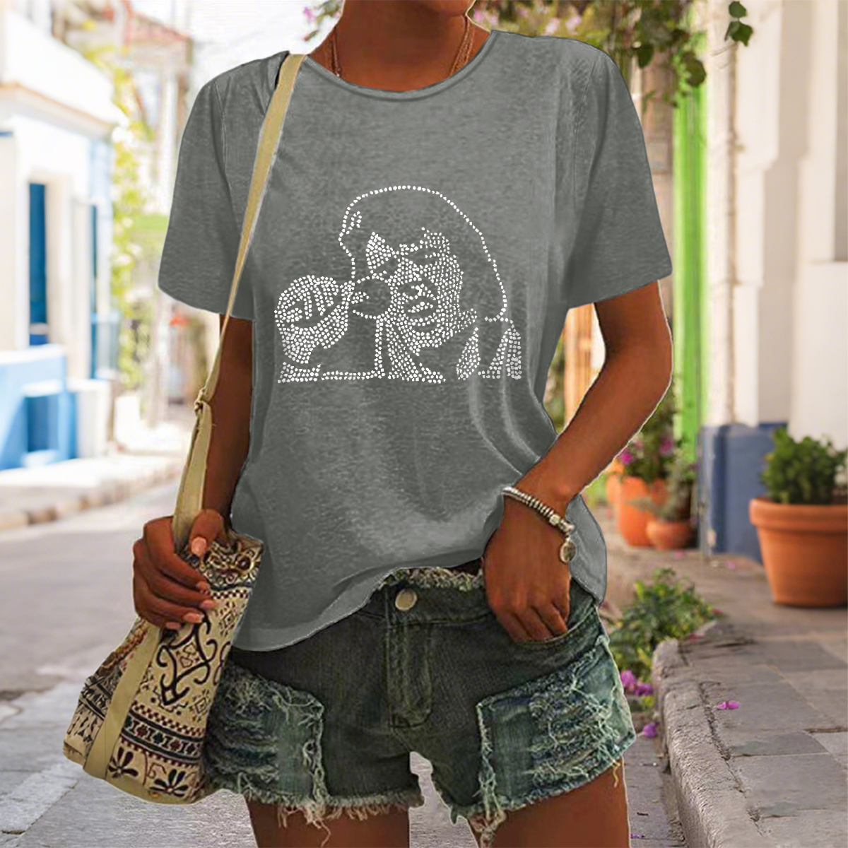 Women's The King Print Short Sleeve Round Neck Cotton T-Shirt