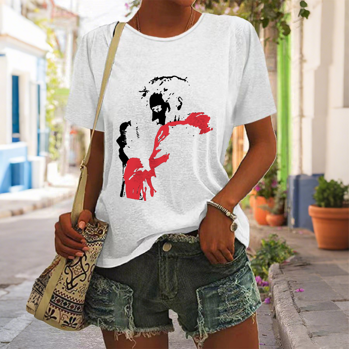 Women's The King Print Short Sleeve Round Neck Cotton T-Shirt
