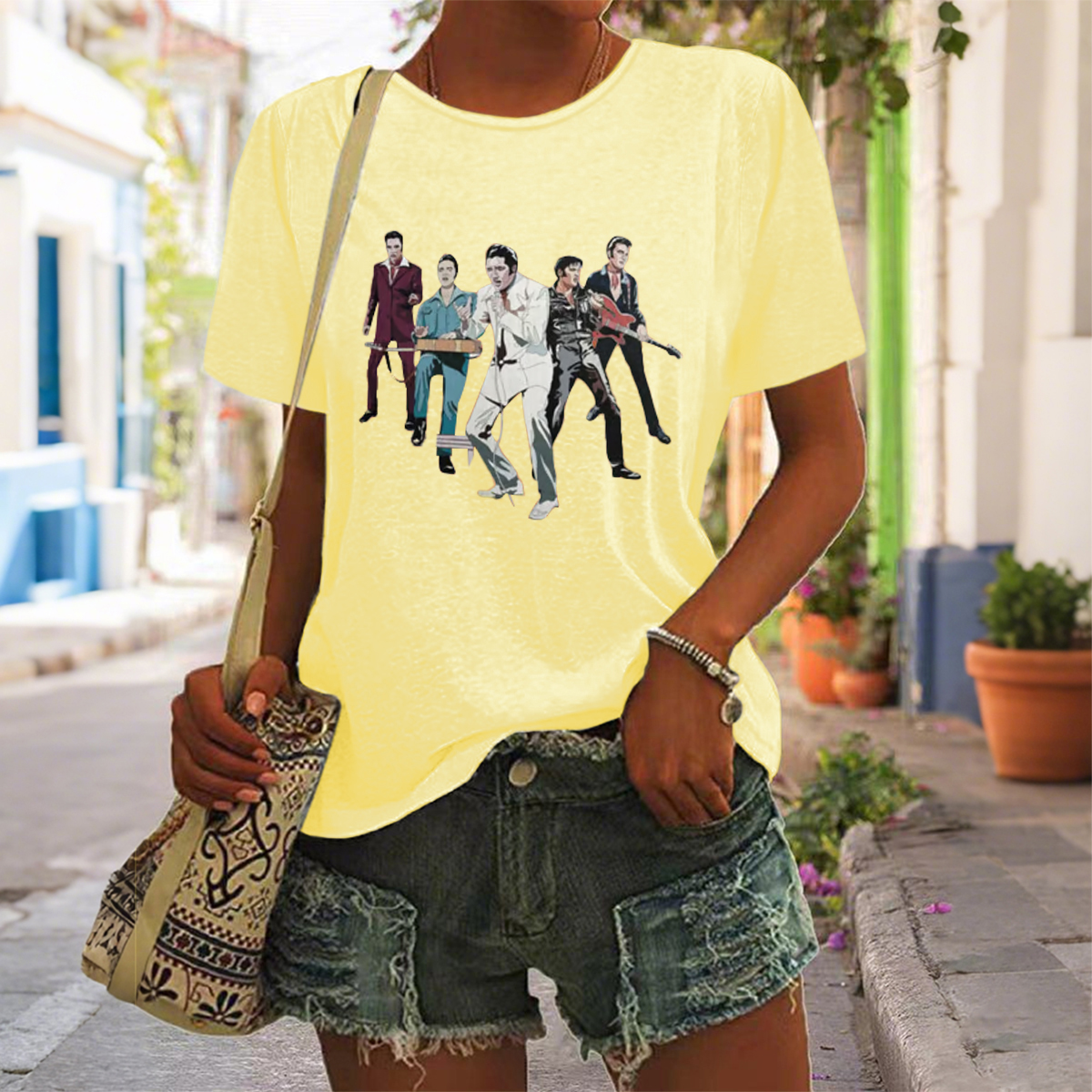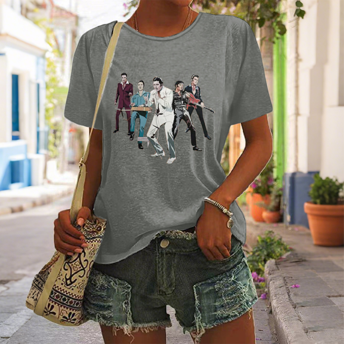 Women's The King Print Short Sleeve Round Neck Cotton T-Shirt