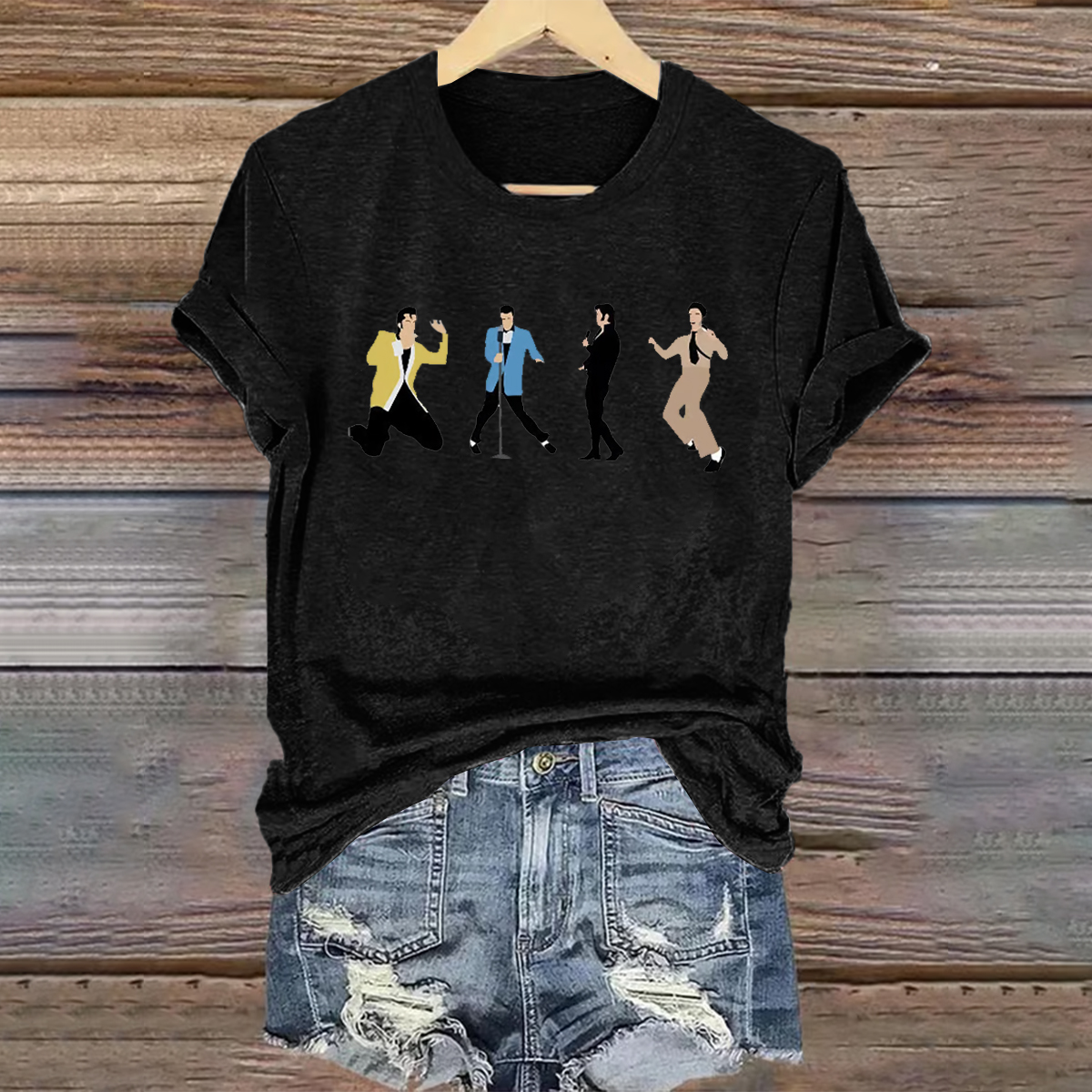 Women's The King Print Short Sleeve Round Neck Cotton T-Shirt