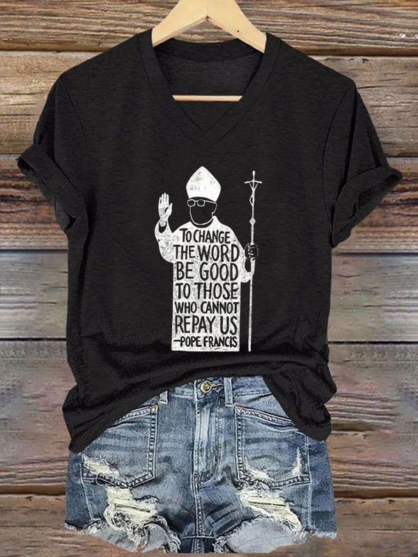 Women's To Change The Word Be Good To Those Who Cannot Repay Us Print Short Sleeve V-Neck Cotton T-Shirt