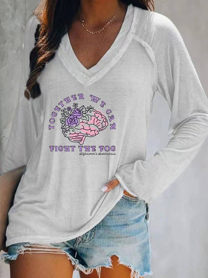 Women'S Together We Gan Fight The Fog Alzheimer'S Awareness V-Neck T-Shirt