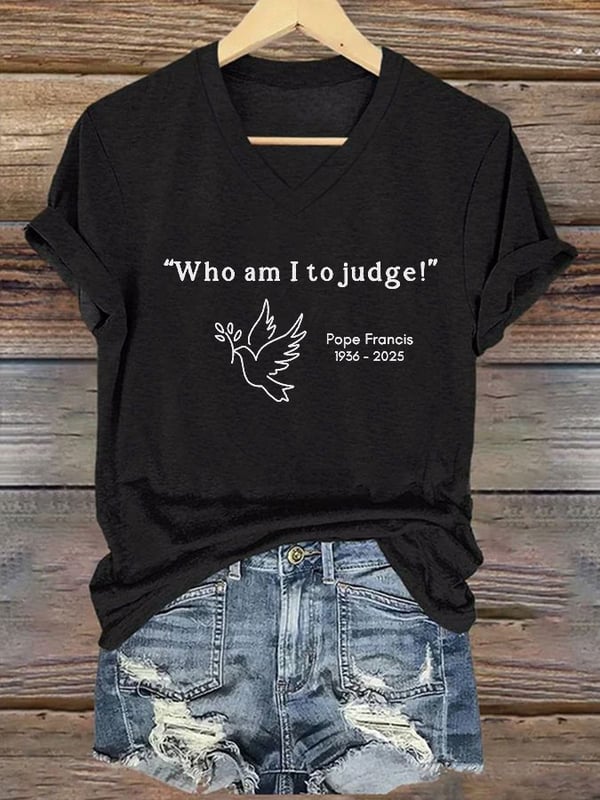 Women's Who Am I To Judge 1936-2025 Print Short Sleeve V-Neck Cotton T-Shirt