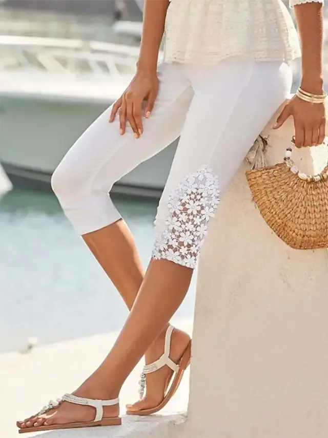 Gender:Women's,Pants Type:Capri shorts,Style:Fashion,Occasion:Casual Daily,Fabric:Polyester,Design:Lace,Elasticity:Stretchy,Pattern:Plain,Function:Comfort,Tummy Control,Butt Lift,Fit Type:Slim,Pants Length:Calf-Length,