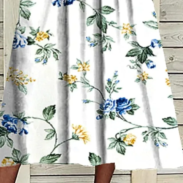 Gender:Women's,Style:Casual,Basic,Occasion:Weekend,Daily,Dresses Type:Casual Dress,Neckline:Crew Neck,Fabric:Polyester,Design:Print,Ruched,Sleeve Length:Short Sleeve,Elasticity:Micro-elastic,Look After Me:Hand wash,Machine wash,Pattern:Print,Floral,Season:Summer,Spring,Dress Length Type:Midi Dress,Fit Type:Loose Fit,2023 Trends:2023,
