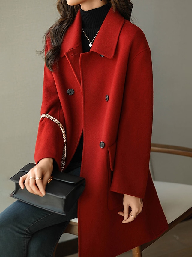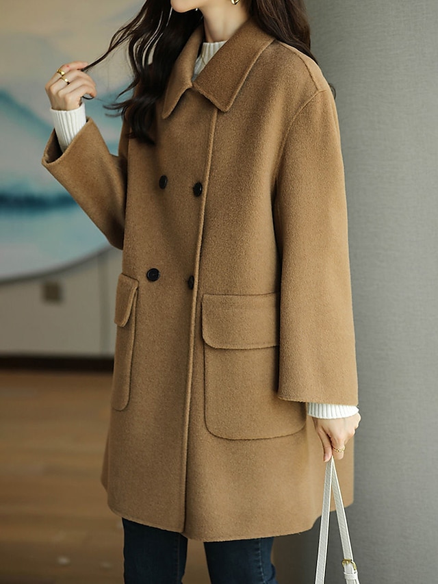 Gender:Women's,Outerwear Type:Coat,Occasion:Outdoor,Going out,Daily,Street,Season:Winter,Fall,Function:Windproof,Warm,Fabric:Polyester,Placket:Double Breasted,Style:Street Style,Trendy,Modern Style,Casual,Outerwear Length:Long,Pattern:Maillard,Plain,Design:with Pockets,Neckline:Lapel,Sleeve Length:Long Sleeve,Fit Type:Loose Fit,Elasticity:Micro-elastic,Look After Me:Machine wash,